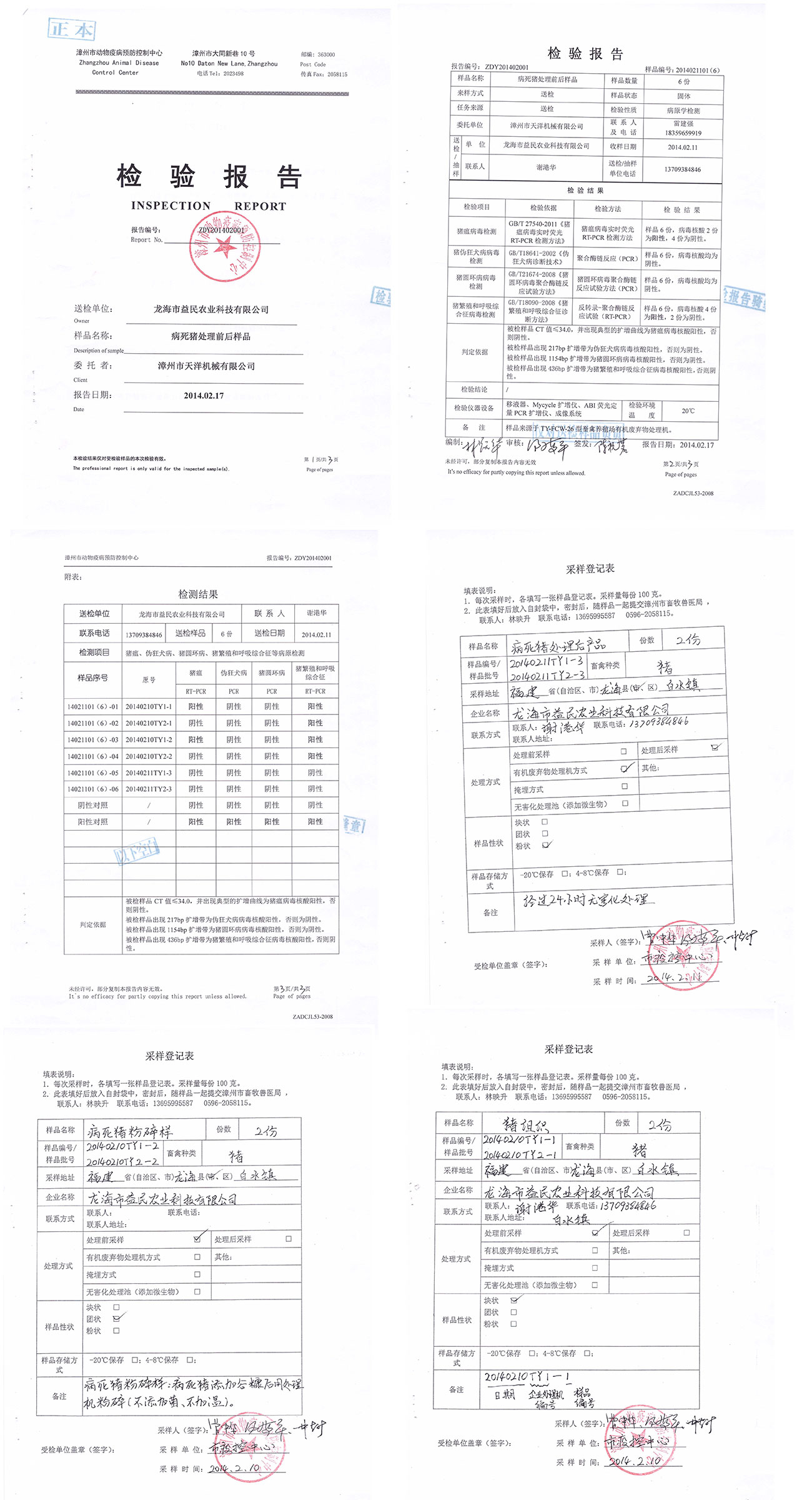 漳州市動物疫病預防控制中心檢驗報告--病死豬處理前后樣品